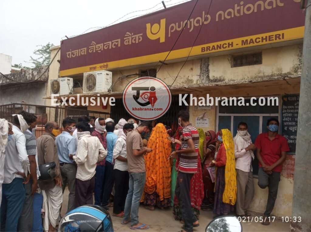 राजगढ़ ( नागपाल शर्मा ) माचाड़ी कस्बे में बस स्टैंड पर पंजाब नेशनल बैंक में लेन देन को लेकर अच्छी खासी भीड़ देखने को मिल सकती है एक तरफ तो राज सरकार द्वारा कोरोना वायरस को लेकर लोगों को चेताया जा रहा है।