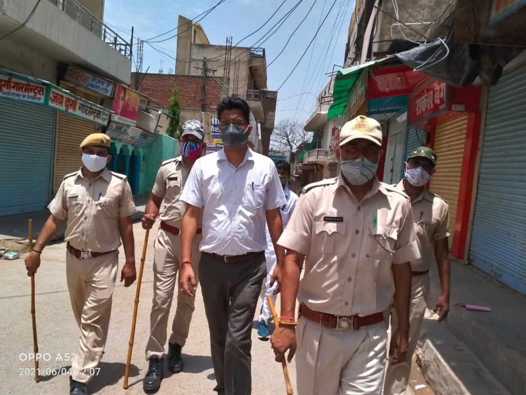 कोटपूतली (बिल्लूराम सैनी) राज्य सरकार द्वारा चलाए जा रहे त्रिस्तरीय जन अनुशासन मॉडिफाइड लोकडाउन के तहत कोरोना गाइड लाइन की अनुपालना करवाने हेतु शहर मे नगरपालिक टीम द्वारा आज को अधिशासी अधिकारी श्री फतेह सिंह मीणा के निर्देशन व नेतृत्व मे नगरपालिका टीम द्वारा श्री सौरभ गर्ग सहायक राजस्व निरीक्षक के द्वारा शहर के मुख्य मार्गो पर फ्लैगमार्च किया गया इस दौरान नगरपालिका टीम द्वारा 11बजे के बाद दुकाने खुली होने पर 2 दुकाने सीज की गई व 2200 रुपए का चालान किया । साथ ही नगरपालिका द्वारा फायरब्रिगेड से शहर मे मुख्य मार्ग को सोडियम हाईपोक्लोराईड से सैनिटाइज करवाया अधिशासी अधिकारी फतेह सिंह मीणा ने बताया की मुख्य मार्गो पर फ्लैग मार्च करने के साथ ही गली मोहल्ले के अंदर जाकर भी अनावश्यक रूप से घर से बेवजह बाहर घूमने वाले पर शक्ति से समझाते हुए कोरोना की गाइडलाइन पालना करने हिदायत दी श्रीमान मीणा जी ने कहा की राज्य सरकार चलाए जा रहे अनुशासन पखवाड़े के तहत कोरोना गाइडलाइन की पालना करवाने मे हम प्रतिबंद है