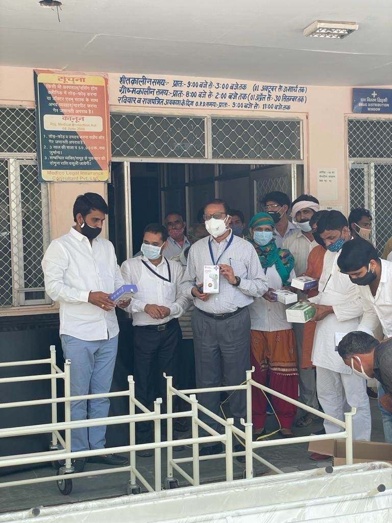 सीएचसी में उपकरणो की कमी को देखते हुए पीसीसी सचिव ललित यादव ने सीएचसी को अपनी ओर से 5 स्ट्रेचर, 5 बैड, 5 गद्दे, 1 व्हील चेयर, 10 ऑक्सिमीटर, 10 थर्मल गन, 2 BP मशीन भेंट की वही सीएचसी प्रभारी को किसी भी चीज की आवश्यकता होने पर अवगत करवाने की बात कही।