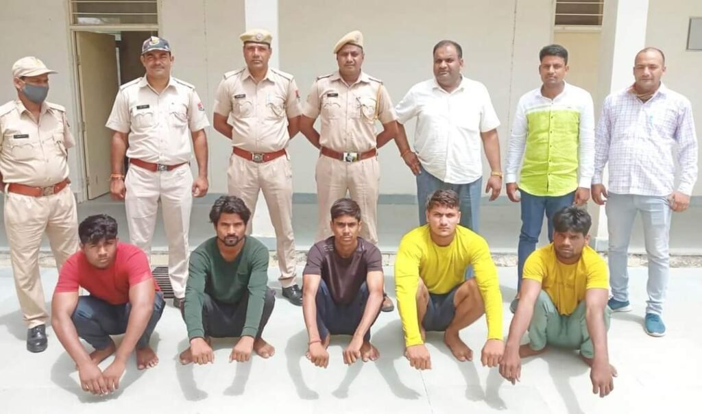 कोटपूतली (बिल्लुराम सैनी) निकटवर्ती पनियाला थाना पुलिस ने बड़ी सफलता हांसिल करते हुए एक पैट्रोल पम्प पर डकैती की योजना बनाते हुए 5 बदमाशों को गिरफ्तार कर उनके पास से अवैध हथियार भी बरामद किये है। जयपुर ग्रामीण एसपी डॉ. शंकरदत्त शर्मा ने जानकारी देते हुए बताया कि जिले भर में पुलिस को अपराध नियंत्रण एवं विशेष अभियान के साथ-साथ वांछित अपराधियों की धरपकड़ तथा अवैध धंधा करने वालों व अवैध हथियार रखने वाले बदमाशों के खिलाफ प्रभावी एवं कड़ी कानूनी कार्यवाही के निर्देश प्रदान किये गये है। इसी क्रम में एएसपी कोटपूतली रामकुमार कस्वां के सुपरविजन व डीएसपी दिनेश कुमार यादव के निर्देशन में पनियाला एसएचओ इन्द्राज सिंह के नेतृत्व में विशेष पुलिस टीम का गठन किया गया है। पुलिस टीम के सदस्य विगत 20 जुलाई की रात्रि को एसएचओ इन्द्राज सिंह के नेतृत्व में रात्रि गश्त व चैकिंग के दौरान ग्राम पनियाला पर राजमार्ग स्थित लीली होटल के पास पहुंचे। इसी दौरान मुखबीर से सूचना प्राप्त हुई कि नीलकण्ठ होटल के थोड़ा आगे खण्डरनुमा सुनसान जगह पर 5 युवा पनियाला के ही मोहिनी पैट्रोल पम्प को लूटने की योजना बना रहे है। जिसकी सूचना पर पुलिस टीम ने मौके पर पहुंचकर छुपते हुए बदमाशों की योजना के बारे में सुना तो उनके द्वारा पैट्रोल पम्प लूट की योजना बनाया जाना सही पाया गया। जिनको घेराबंदी करके मौके से पकड़ा गया तो गैंग के सरगना गुरूदयाल मेघवाल के पास से एक लोडेड देशी कट्टा, आशीष जाटव के पास से एक पिस्टल, नितेश कुमार के कब्जे में एक लौहे का पाईप एवं नितिन व राहुल के कब्जे से लाठी बरामद की गई। इस पर पुलिस ने पांचों आरोपी गैंग के सरगना गुरूदयाल (24) पुत्र मानसिंह मेघवाल निवासी ग्राम गुवाड़ा, थाना हरसौरा (अलवर), आशीष (22) पुत्र मानसिंह जाटव, नितेश कुमार (19) पुत्र मुकेश कुमार जाटव, राहुल (23) पुत्र मानसिंह जाटव, नितिन (19) पुत्र वीरसिंह जाटव चारों निवासी ग्राम तिनगिरूड़ी, थाना मुण्डावर जिला अलवर को गिरफ्तार कर लिया गया। गिरफ्तार किये गये आरोपियों के विरुद्ध विभिन्न धाराओं मे मुकदमा दर्ज कर अनुसंधान किया जा रहा है। गिरफ्तार किये गये बदमाशों में आशीष व राहुल सगे भाई है।