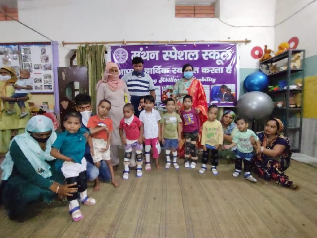 फुट ऑर्थोसिस पा कर खिले दिव्यांग बच्चों के चेहरे। मंथन दिव्यांग रिहैबिलिटेशन सेंटर में दिव्यांग बच्चों को फुट ऑर्थोसिस वितरित किए गए।
