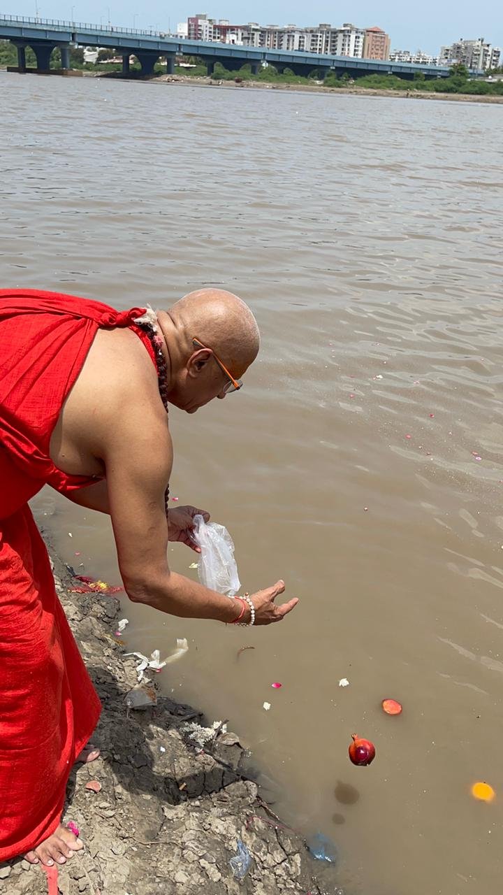 महामंडलेश्वर स्वामी हंसराम उदासीन ने की सूर्य पुत्री तापी नदी में यज्ञ भस्मि प्रवाहित