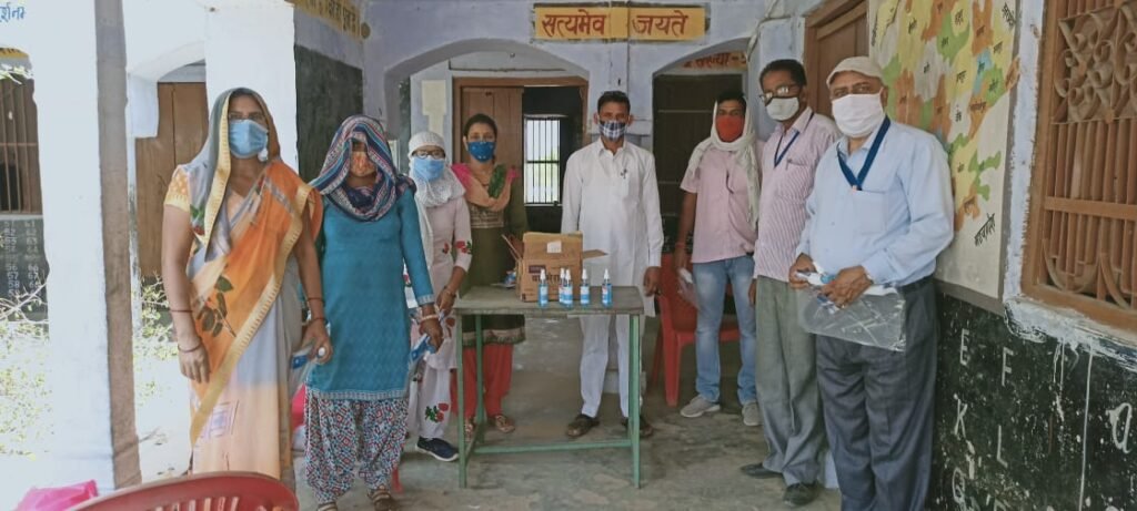 बीजवाड चौहान ( कुलदीप योगी) गांव मिर्जापुर के राजकीय उच्च प्राथमिक विद्यालय में सरपंच प्रतिनिधि एडवोकेट नरेंद्र धनवाल ने एसीटी कोविड सेंटर में कार्यरत कर्मचारियों व पंचायत की आंगनबाड़ी स्टाफ के सदस्यों को कोरोना महामारी से बचाव के लिये मास्क, सेनिटाइजर, फेस शील्ड, ओकसोमिटर व स्कैनर भेंट किये।