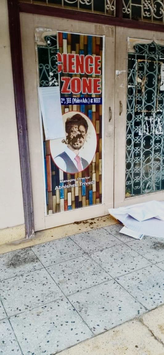 सोमवार दोपहर जाप बिहार विश्वविद्यालय छात्र अध्यक्ष सुभाष ठाकुर ने कार्यकर्ताओ के साथ साइंस जोन (निजी) कोचिंग संस्थान पहुंचकर मकान मालिक से पूरे मामले की जानकारी ली जिसके बाद मकान मालिक को कोचिंग खाली करवाने को कहा गया है। साथ ही संस्थान सहित सड़को पर लगे कोचिंग के बैनर पोस्टर को फाड़कर संचालक के फोटो और पोस्टर्स सहित पूरे कोचिंग एरिया को कालिक पोत हंगाया किया। इस दौरान अध्यक्ष सुभाष ठाकुर, शाहिल अली,आरिफ,सचिन सहित बड़ी संख्या मे छात्र उपस्थित रहे।