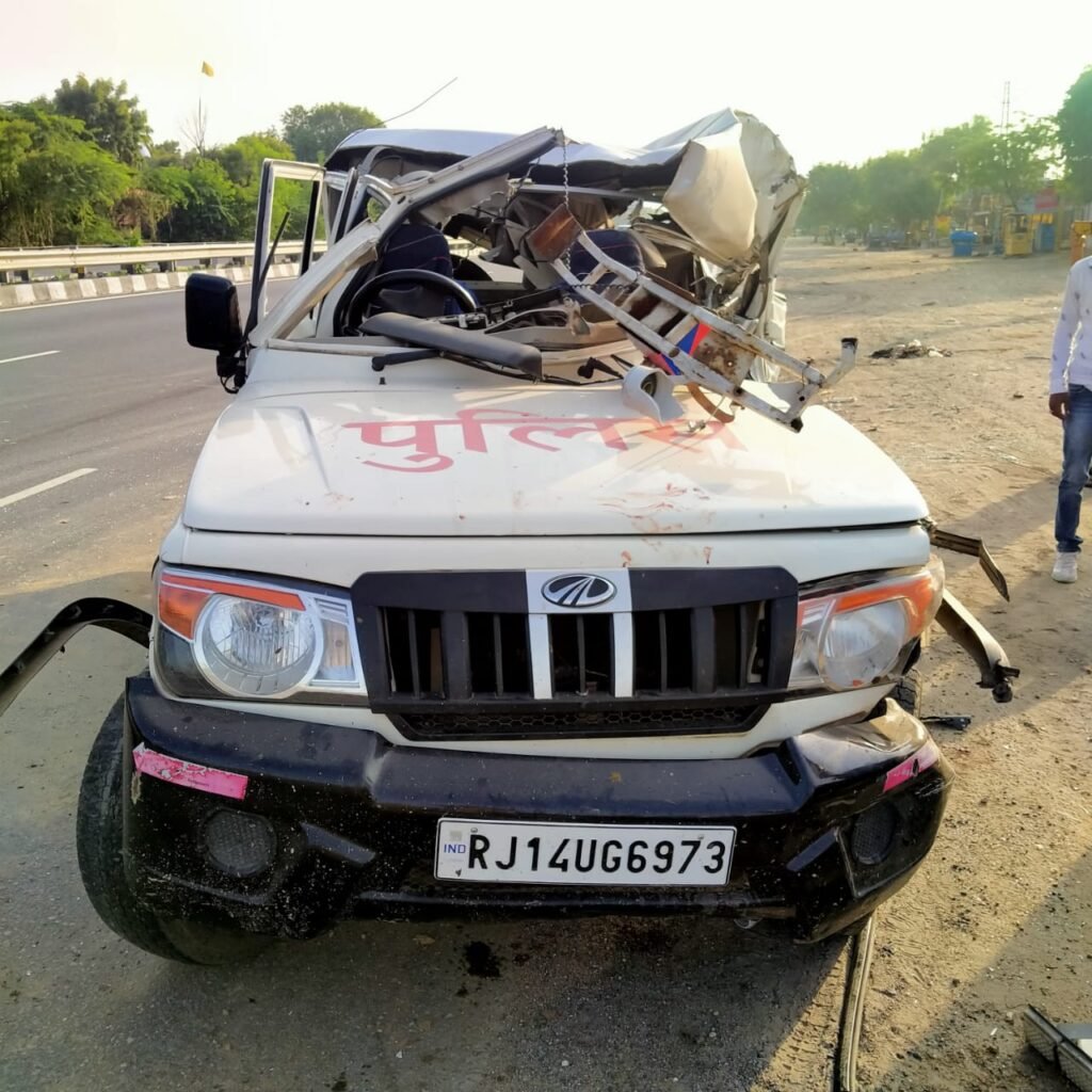 शाहपुरा(जयपुर) नरैना में चार साल की बच्ची के रेप के मामले में जांच के लिए जा रही शाहपुरा थाना पुलिस की गाड़ी दुर्घटनाग्रस्त हो गई। हादसे मे शाहपुरा थाना प्रभारी विजेंद्र सिंह समेत 8 पुलिसकर्मी घायल हो गये। हादसा जयपुर के समीप दूदू में हुआ।