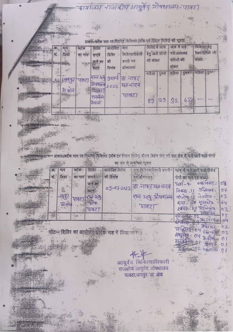 आयुर्वेदिक औषधालय पावटा चिकित्सक डॉक्टर नाहर मल यादव ने जानकारी देते हुए बताया कि आयुर्वेदिक विभाग द्वारा आयोजित एक दिवसीय चिकित्सा शिविर में 218 मरीजो ने आयुर्वेदिक चिकित्साओं का लाभ लिया। इस दौरान डॉ सुशीला पलसानिया ,दिनेश कुमार शर्मा, रामकरण यादव ,परिचारक केदार मल सैनी ने अपनी सेवाएं दी।