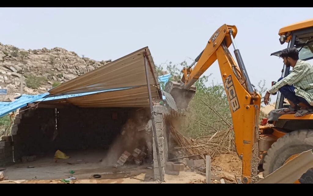 बानसूर उपखंड के हरसोरा में हटाया अवैध अतिक्रमण।