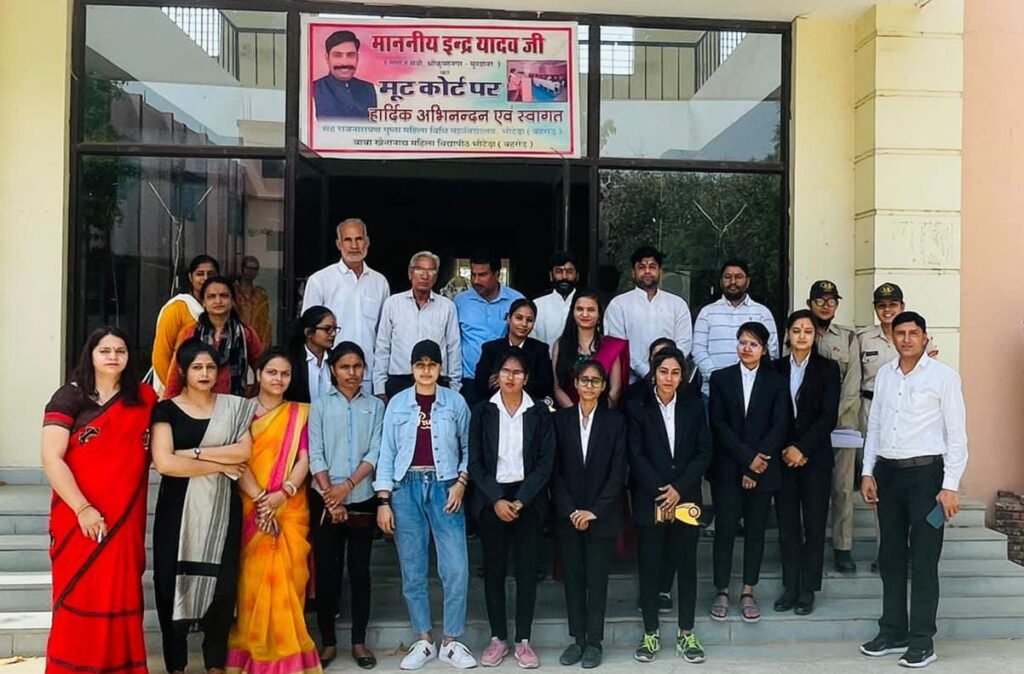 क्षेत्र के बाबा खेतानाथ महिला विद्यापीठ परिसर स्थित सेठ राजनारायण गुप्ता विधि महाविद्यालय मे शनिवार को मूट कोर्ट कार्यक्रम का आयोजन किया गया। विधि प्रवक्ता एडवोकेट जेपी यादव ने बताया कि विद्यापीठ संयोजक एवं विधि प्राचार्य डां करण सिंह यादव की अध्यक्षता मे आयोजित मूट कोर्ट में जज दीपिका,केएम नानावटी के पक्षकार बरखा चौहान, शिवानी गुप्ता, प्रेम आहुजा के पक्षकार प्रियंका, कांता सैनी सहित केएम नानावटी दीपा,सिल्विया मौसम मुदगल, मीमी आहुजा अंशु शर्मा, आहुजा का नौकर मोनिका, रीडर हर्षा पाण्डे, अंशु राजपुत ,डॉक्टर मनीषा और नौ सेना अधिकारी प्रियंका, हाजिर हो रेणू ने केएम नानावटी बनामा प्रेम आहुजा केस पर मूट कोर्ट के तहत बहस कर मूट कोर्ट मे भूमिका को निर्वहन कर अपनी भूमिका निभाई ।मूट कोर्ट कार्यक्रम मे मुख्य अतिथि भामाशाह समाजसेवी इन्द्र यादव ने विधि छात्राओ का उत्साहवर्धन करते हुए सम्मानित किया और समाज सेवी इन्द्र यादव ने विद्यापीठ मे मूट कोर्ट बनवाने की घोषण की। इस अवसर पर जयपाल यादव, धर्मेन्द्र यादव, बजरंग यादव,पीजी प्राचार्य डा.जीतेन्द्र यादव, समिति पूर्व सचिव महावीर प्रसाद, कोषाध्यक्ष रणजीत यादव, प्रोफेसर शारदा, सुशीला यादव सहित समस्त स्टाफ और विधि छात्राऐं उपस्थित थी।