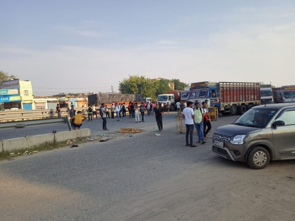 साधन नहीं मिलने पर पटवारी अभ्यर्थियों ने बहरोड़ में हाइवे पर लगाया जाम