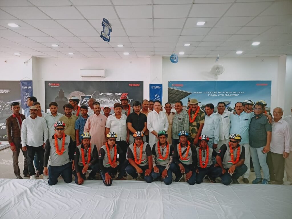 बहरोड़ (केडीसी) जैसलमेर से दिल्ली राजघाट पर तिरंगा फहराने के लिए राजस्थान फ्रंटियर की साइकिल रैली आज बहरोड़ पहुंची जहां पर यामाहा शोरूम पर नगर पालिका चेयरमैन सीताराम यादव के द्वारा भव्य स्वागत किया गया