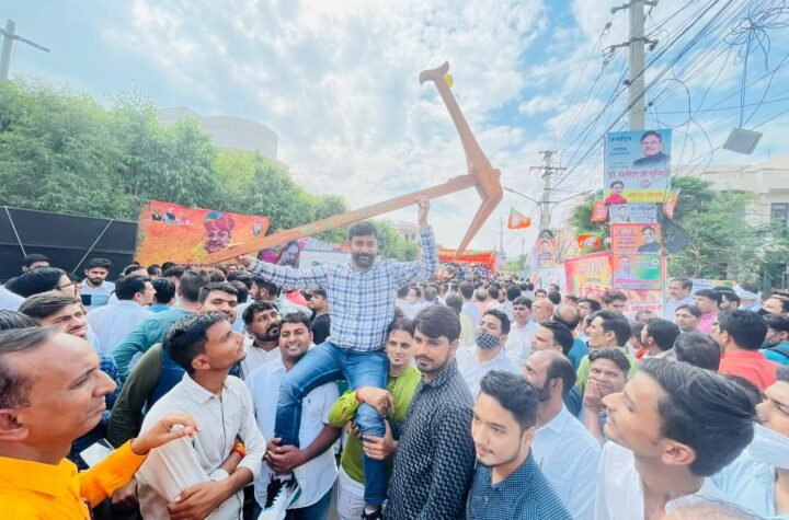 माँ काली की मूर्ति को करवाया नगर भ्रमण,श्री अवध बिहारी बगीची परिसर में शुक्रवार को होगी मूर्ति की प्राण प्रतिष्ठा,कल विशाल भण्डारे का होगा आयोजन