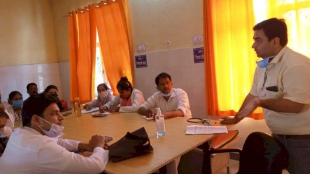 बहरोड़ (केडीसी)बर्डोद कस्बा स्थित सेठ रूडमल रघुनाथ दास महावर राजकीय रैफर चिकित्सालय बर्डोद में चिकित्सालय प्रभारी डा सुरेन्द्र आर्य के निर्देशन में आयोजित एक दिवसीय प्रशिक्षण शिविर में चिकित्सकों ने मौके पर मौजूद नर्सिंग कर्मियों के साथ मौसमी बिमारीयों सहित अन्य विषयों पर चर्चा की साथ ही उनको प्रशिक्षण दिया गया। प्रशिक्षण शिविर में डा अखिलेश स्वामी ने चिकित्सालय में आने वाले गंभीर मरीजों की जांच, ईलाज, एंव निगरानी के सम्बन्ध में विस्तृत जानकारी दी। वहीं मौसमी बिमारीयों, सहित चिकित्सालय में आने वाले हर रोगी को बेहतर चिकित्सा सुविधा देने सहित अन्य विषयों पर चर्चा की। इस दौरान डा दिनेश शेरावत, सत्यवीर यादव, उग्रसेन, धारासिंह, विजय, अंशुल, रितु, निर्मला, मंजु, सरोज, सहित चिकित्सालय का अन्य स्टाफ मौजूद रहा।