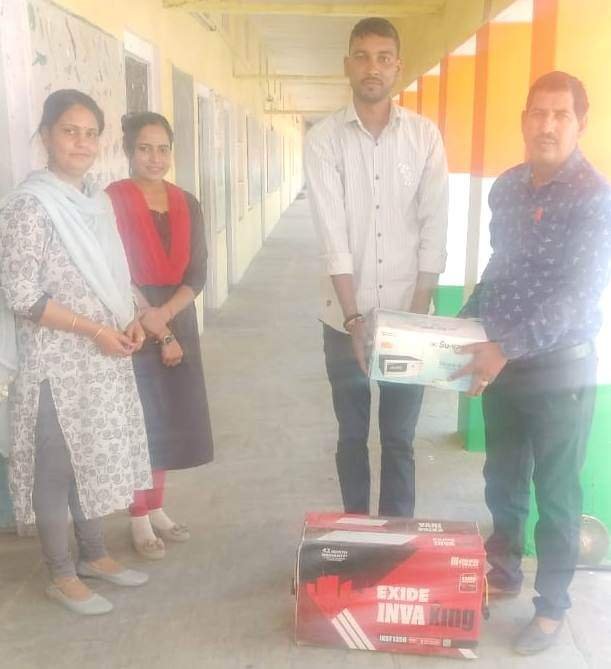 कोटपूतली (बिल्लूराम सैनी) कस्बे की ढ़ाणी फौजावाली स्थित राजकीय उच्च प्राथमिक विद्यालय को स्थानीय पार्षद राकेश सैनी व भामाशाह धर्मवीर राठौड़ द्वारा गर्मी के मौसम में विधुत कटौती से बचाव हेतु बैट्री व इन्वर्टर भेंट किया गया। प्रधानाध्यापक रोहिताश बडग़ुर्जर ने भामाशाहों का धन्यवाद् ज्ञापित किया। इस दौरान पार्षद प्रतिनिधि दीपक कटारिया, पार्षद विष्णु भाटी समेत पारूल शर्मा, सुनीता कुमारी, देशराज बुनकर व शिवानी सैनी आदि स्टॉफ सदस्य मौजूद थे।