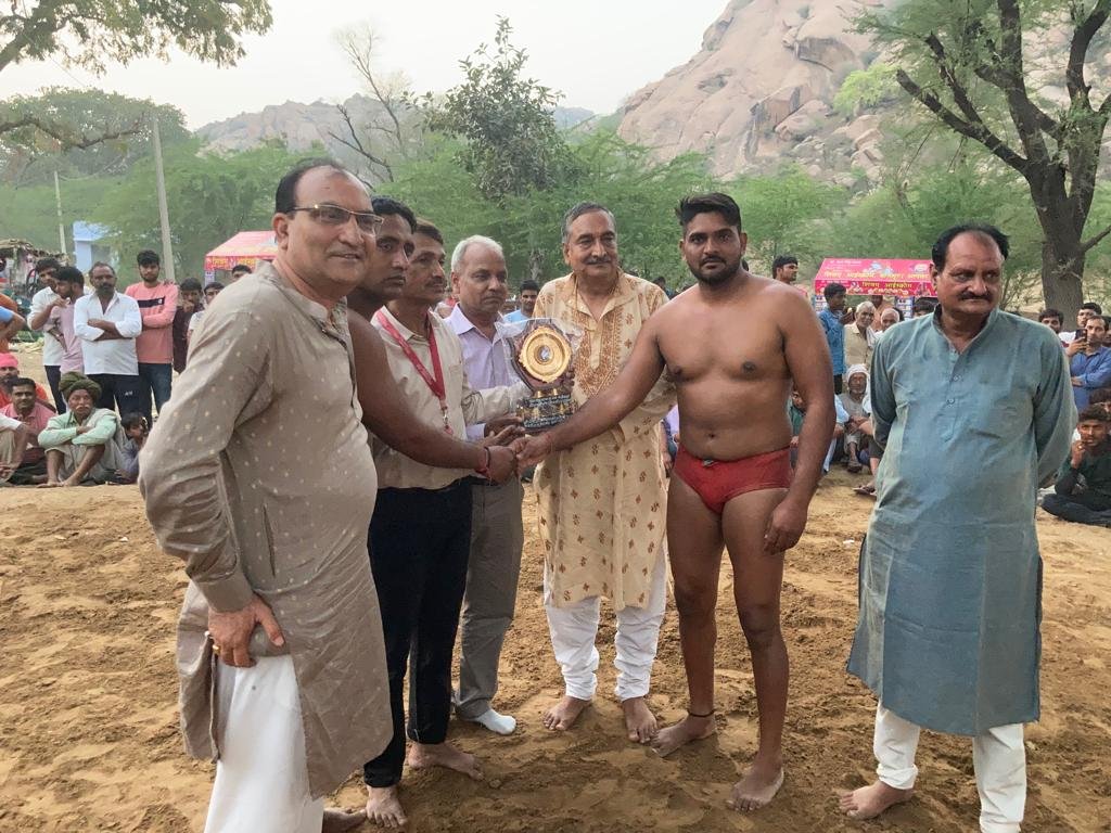 कामड़े की कुश्ती स्वर्गीय श्री बिरदी चंद जी लक्ष्मीनारायण जी शर्मा चूला की स्मृति में पौत्र श्री ओम प्रकाश शर्मा जी द्वारा प्रतीक चिह्न एवं 5100 रुपए की पुरस्कार राशि प्रथम विजेता पहलवान दौलत सिंह टोडिया का बास व 3100 रुपए का द्वितीय पुरस्कार नरेश खटोटी को मुख्य अतिथि राजस्थान भवन एवं अन्य संनिर्माण श्रमिक कल्याण बोर्ड के सदस्य कृष्ण गोपाल कौशिक ने विजेता पहलवानों को भेंट कर सम्मानित किया।