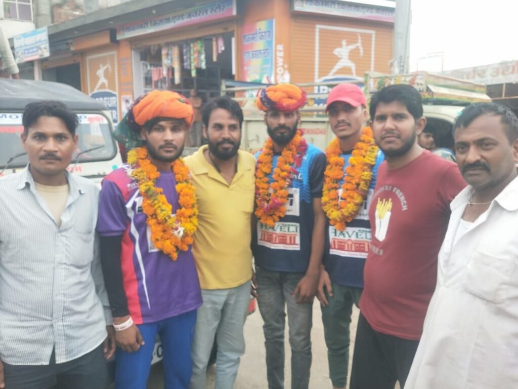 शाहपुरा के मंडी तिराहे पर इंटरनेशनल कबड्डी प्रतियोगिता में जीत कर आए विजेता बाबा सैनी, दीपेंद्र कुमार सैनी, कृष्ण कुमार सैनी व श्रीराम जाट का डीजे बजाकर और माला व साफा पहनाकर किया स्वागत। इस मौके पर जयपुर शहर भाजपा किसान मोर्चा के सोशल मीडिया प्रभारी अक्षय शर्मा, पूर्व नगरपालिका पार्षद धोलू राम सैनी, सुल्तान सैनी, रोहित शर्मा, मंगल सैनी, मनीष सैनी, तनु राजपूत, कृष्ण गुर्जर, अजय शर्मा, नवरत्न चावला, आशीष सैनी आदि बड़ी संख्या में लोग मौजूद थे।