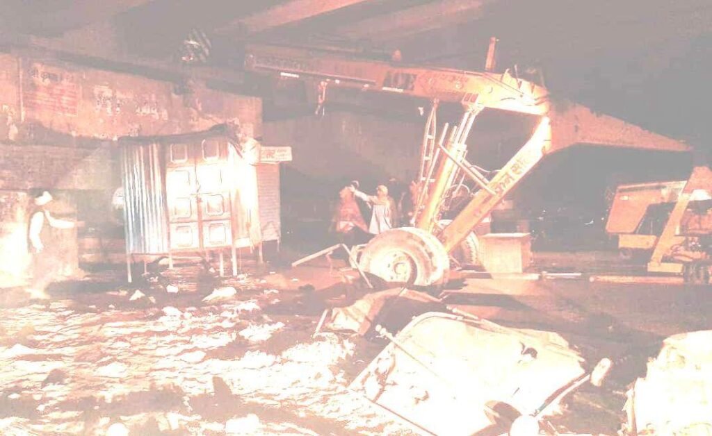 गुरूवार शाम पालिका ईओ फतेह सिंह मीणा के नेतृत्व में पालिका कार्मिकों व पुलिस जाप्ते ने मुख्य चौराहे पर एलीवेटेड पुलिया के सामने अस्थाई अतिक्रमण को हटाया।