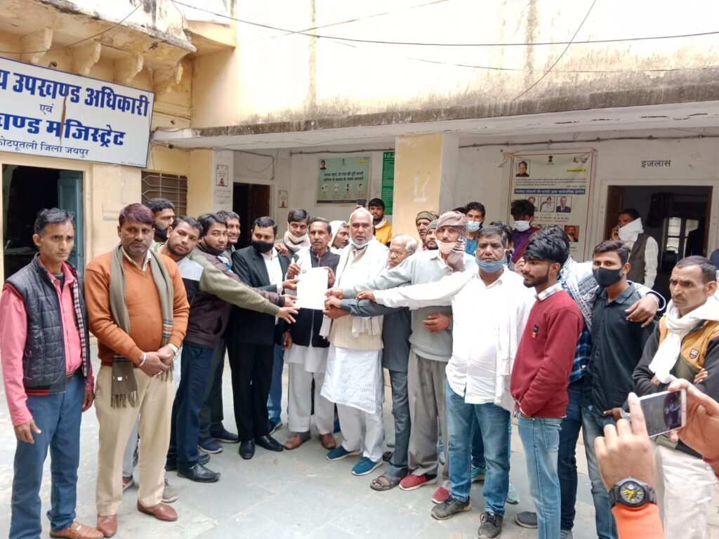 कोटपूतली (बिल्लूराम सैनी) शुक्रवार को लोकतांत्रिक जनता दल के प्रदेश अध्यक्ष रामनिवास यादव की अगुवाई में व्यापारियों के पक्ष में कोटपूतली नायब तहसीलदार ओम प्रकाश को महामहिम राज्यपाल महोदय के नाम ज्ञापन सौंपा। गौरतलब है कि विगत करीब दो माह से कोटपूतली में नगरपालिका मंडल द्वारा मास्टर प्लान के नाम पर कोटपूतली मैन चौराहे से नगरपालिका तिराहे तक की सड़क को 80 फुट चौड़ा व शनि मंदिर से सरदार स्कूल तक की सड़क को 60 फुट चौड़ा करने हेतु इस क्षेत्र की समस्त दुकानों मकानों , व्यवसायिक भवनों आदि को तोड़ना चाह रहे है।