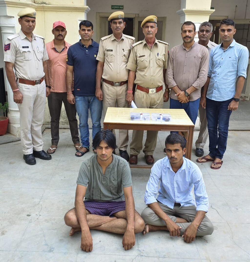 जिन्हें कानि. पप्पुराम व संजय ने खेतों में पीछा करके काबु करते हुए पकड़ लिया। पुलिस ने आदतन अपराधी किस्म के दोनों युवकों क्रमश: पवन उर्फ पंखिया (23) पुत्र सुरेश चंद्र गुर्जर व बृजेश उर्फ पंच (22) पुत्र रोहिताश गुर्जर दोनों निवासी ग्राम नांगल पण्डितपुरा को गिरफ्तार कर उनके पास से एक पिस्टल, एक देशी कट्टा, दो जिन्दा कारतुस बरामद किये।