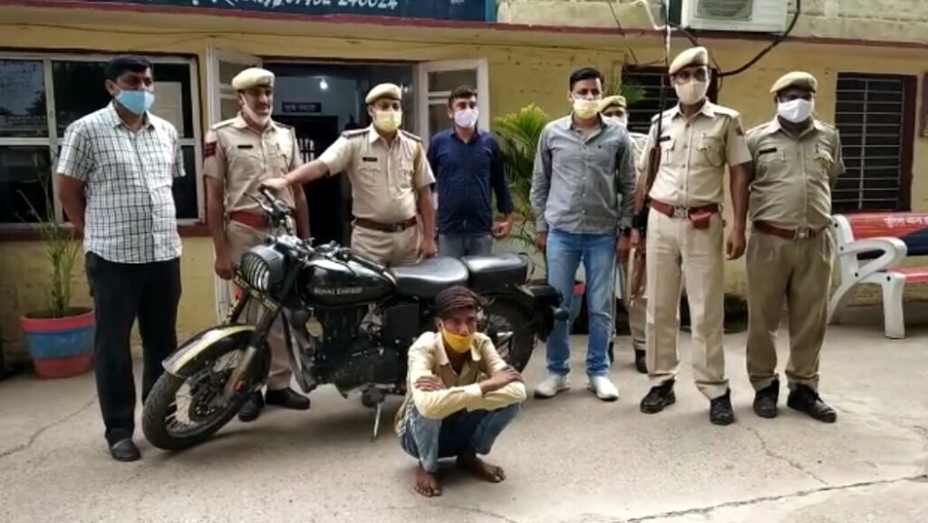 देर शाम पंचमुखी रोड पर आरोपी युवकों ने उन्हें पकड़ा और चाकू की नोक पर मारपीट करते हुए जेब से 2 हजार रुपये छीन लिए और पावर बाइक रॉयल एनफील्ड छीन कर भाग गए।डीएसपी अमित कुमार ने बताया कि घटना की रिपोर्ट पर पुलिस ने अनुसंधान किया और झालावाड़ जिले के पिडावा कस्बे से आज वारदात में शामिल एक आरोपी आरोपी को गिरफ्तार कर लिया। पुलिस ने वारदात में शामिल दो नाबालिग को भी डिटेन किया है।