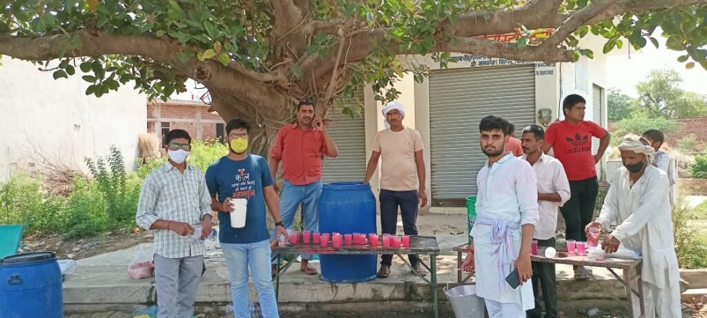 खैरथल ।कस्बे के विभिन्न स्थानों पर मीठे जल की प्याऊ लगाई वही कस्बे में पहेल मोड़ पर माधव शाखा के द्वारा मीठे जल की प्याऊ लगाई ग‌ई।
