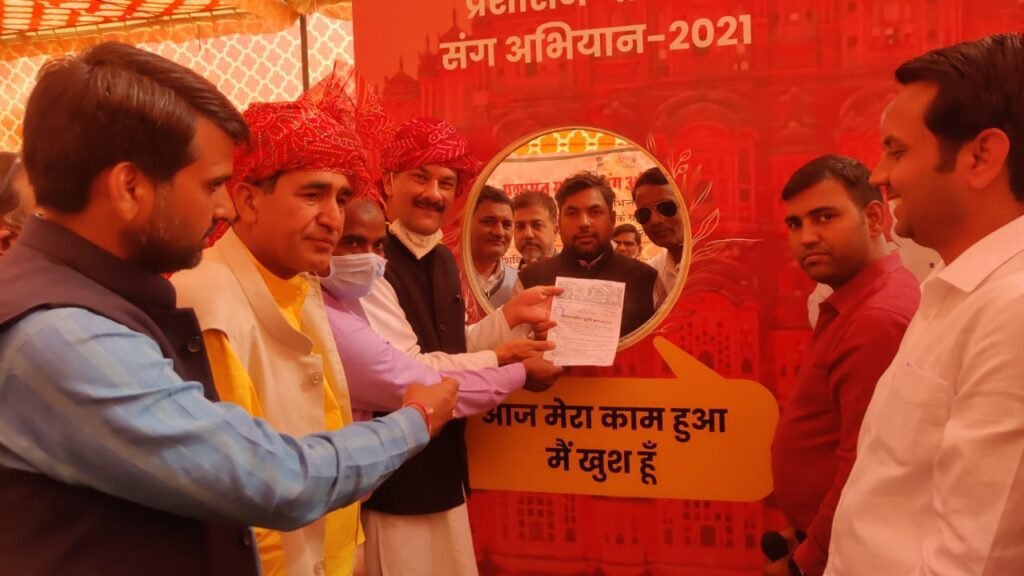 शाहजहांपुर (केडीसी) कस्बे के राजकीय खेल मैदान मे मंगलवार को प्रशासन गांव के संग शिविर का आयोजन पूर्व केन्द्रीय मंत्री भंवर जितेन्द्र सिंह के मुख्य आतिथ्य मे हुआ। विशिष्ट अतिथि जिला प्रमुख बलबीर छिल्लर थे। अध्यक्षता ग्राम सरपंच वीरमति यादव ने की। शिविर मे सरपंच प्रतिनिधि ऋषि यादव, समाजसेवी गिर्राज यादव द्वारा कस्बे के लाल डोरे का 1974 के बाद विस्तार नहीं होने पर पट्टे बनाने मे हो रही असुविधाओं पर प्रकाश डाला जिसपर पूर्व केन्द्रीय मंत्री सिंह ने सुप्रीम कोर्ट की गाईडलाईन के अनुसार राज्य सरकार द्वारा शिघ्र कोई रास्ता निकालने की बात कही। पूर्व केन्द्रीय मंत्री सिंह ने एसडीएम मुकुट चौधरी, तहसीलदार पुष्पेन्द्र सिंह एवं शिविर प्रभारी ओमप्रकाश निर्मल को शिविर मे बिना किसी प्रभाव एवं भेदभाव के ग्रामीणों के काम करने के निर्देश दिये। शिविर मे 137 पट्टे, 49 जन्म प्रमाणपत्र, 18 मृत्यु प्रमाणपत्र, 160 इंतकाल, 58 जॉब कार्ड, 25 पेन्शन एवं 90 श्रमिक कार्ड बनायें। अतिथियों द्वारा सरकारी योजना के तहत एक बालिका को स्कूटी प्रदान की गई । इस अवसर पर डीएसपी नीमराना महावीर शेखावत, पीसीसी सचिव ललित यादव, यूथ कॉग्रेस जिलाध्यक्ष संजय यादव, ग्राम सचिव रवि कुमार, पटवारी पवन यादव, विद्युत निगम सहायक अभियंता नवीन यादव, कनिष्ठ अभियंता आशीष जोशी, युवा नेता दीपक यादव, सयुक्त व्यापार संघ अध्यक्ष नाहरसिहं चौहान, जिला पार्षद भीमराज यादव, चंचल कुमावत, आयुर्वेद विभाग से डॉ.विकास गौड, बार एसोसिएशन अध्यक्ष एडवोकेट मकरध्वज शर्मा सहित बडी संख्या मे अधिकारी एवं ग्रामीण उपस्थित रहे।