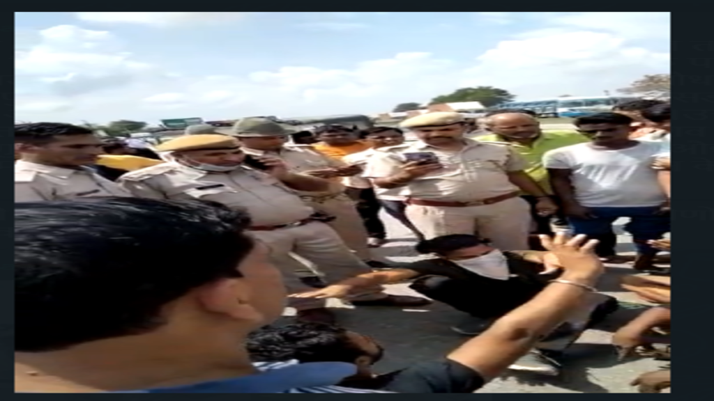 इधर आक्रोशित गुगलकोटा ग्रामीणों ने शाहजहांपुर से घिलोठ औद्योगिक क्षेत्र तक जा रहे दो सौ फिट रोड को जाम क दिया एंव आंदोलनरत किसान व प्रशासन के खिलाफ जमकर प्रदर्शन किया ।