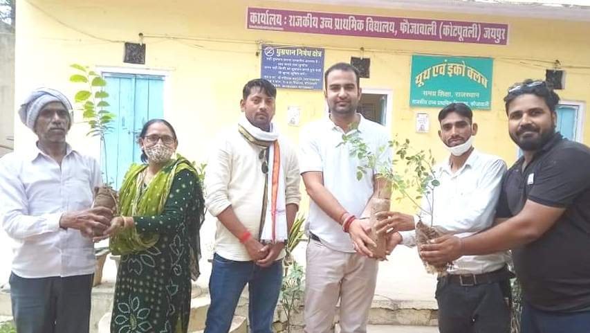 कोटपूतली (बिल्लुराम सैनी) युवा कॉग्रेस के पूर्व प्रदेश महासचिव भीम पटेल द्वारा शनिवार को ढ़ाणी फौजावाली स्थित राजकीय उच्च प्राथमिक विधालय में पौधारोपण किया गया। इस मौके पर पार्षद प्रतिनिधि सुभाष चंद सैनी, दीपक कटारिया, नवीन सैनी समेत विधालय स्टॉफ के सदस्य मौजुद रहें। वहीं पटेल ने ईंधन की बढ़ती हुई किमतों को देखते हुए नरेगा में कार्यरत ग्रामीण श्रमिक महिलाओं के लिए निजी कोष से ईंधन की व्यवस्था की।