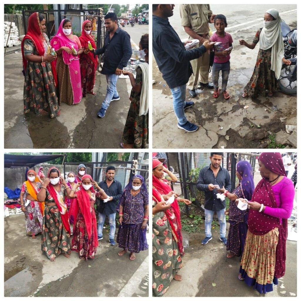 भीलवाड़ा (पंजज आडवाणी) कांग्रेस के पूर्व राष्ट्रीय अध्यक्ष औऱ लोकप्रिय नेता राहुल गांधी के जन्मदिन पर वार्ड नंबर 45 के पार्षद वसीम शेख ने अपने पूरे वार्ड और महाराणा मार्केट मैं कोरोना महामारी को देखते हुए सैनिटाइजर व मास्क वितरित किए। साथ ही शेख ने कहा कि इस समय तीसरी लहर कभी भी दस्तक दे सकती है, इसीलिए आमजन को सावधानी बरतनी होगी, इस मौके पर कांग्रेस नेता मोहम्मद साबिर शेख भी मौजूद थे। शेख की पहल से वार्डवासियों में जागरूकता हुई।