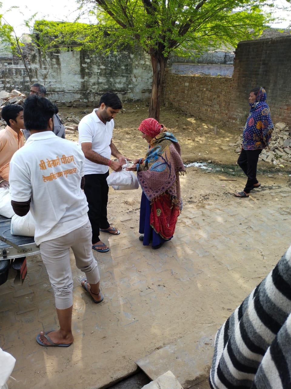 रैणागिरी धाम ने गरीब बस्तियों में राशन किट किए वितरण।