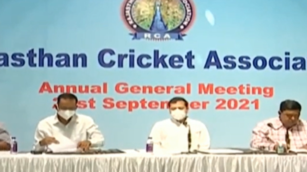 जयपुर ( केडीसी ) राजस्थान क्रिकेट एसोसिएशन की वार्षिक साधारण सभा का आयोजन किया गया। आरसीए अध्यक्ष वैभव गहलोत की अध्यक्षता में लंबे समय बाद हुई एजीएम की मीटिंग हंगामेदार रही। आरसीए के विभिन्न मुद्दों को लेकर हुई इस बैठक में नागौर जिला क्रिकेट एसोसिएशन के सचिव राजेंद्र नान्दु द्वारा गले में अपने जिला क्रिकेट संघ की एक तख्ती लटकाए रखना चर्चा का विषय रहा। आरसीए की एजीएम में आज ओंबड्समैन और एथिक्स ऑफिसर की नियुक्ति को लेकर आरसीए कार्यकारिणी को अधिकार दिए गए। इस पर आगामी दिनों में कार्यकारिणी फैसला करेगी।