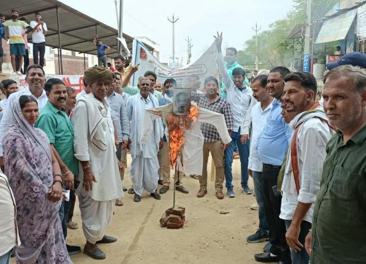 शाहपुरा में पीएम का फूंका पुतला अग्निपथ योजना को वापस लेने की मांग, राहुल गांधी को परेशान करने का लगाया आरोप।