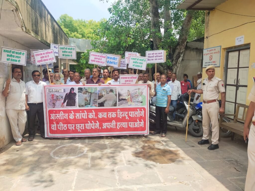 कोटपूतली विगत दिनों प्रदेश के उदयपुर में हिन्दू व्यापारी कन्हैया लाल टेलर की बर्बरतापूर्वक की गई नृशंस व निर्मम हत्या के घटनाक्रम को लेकर कोटपूतली में आमजन के बीच निरन्तर आक्रोश व्याप्त है। कस्बे में घटनाक्रम के विरोध में विश्व हिन्दू परिषद्, बजरंग दल, आरएसएस, भाजपा व संत समाज समेत विभिन्न संगठनों द्वारा निरन्तर कड़ी कार्यवाही की मांग को लेकर राज्यपाल व राष्ट्रपति को निरन्तर ज्ञापन प्रेषित किये जा रहे है। इसी क्रम में सोमवार को कस्बे के व्यापारियों का भी आक्रोश देखने को मिला।